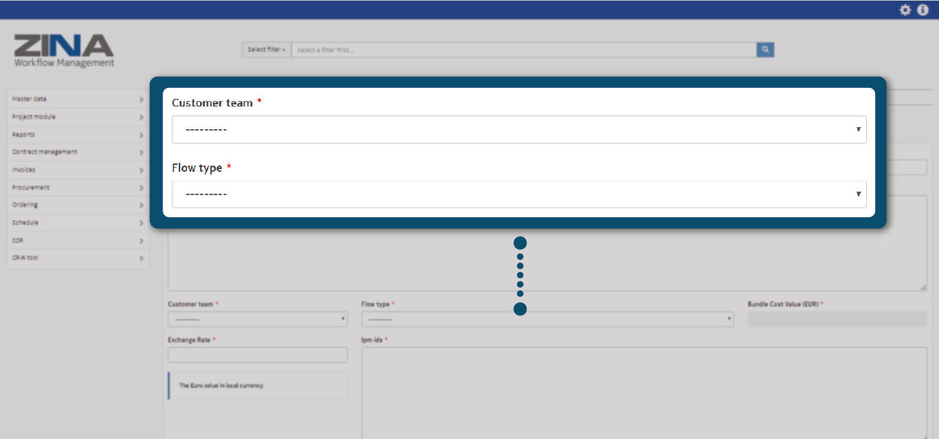 Select customer team of Bundle (only available for those allowed by Key Users) and define the type of flow to be used.