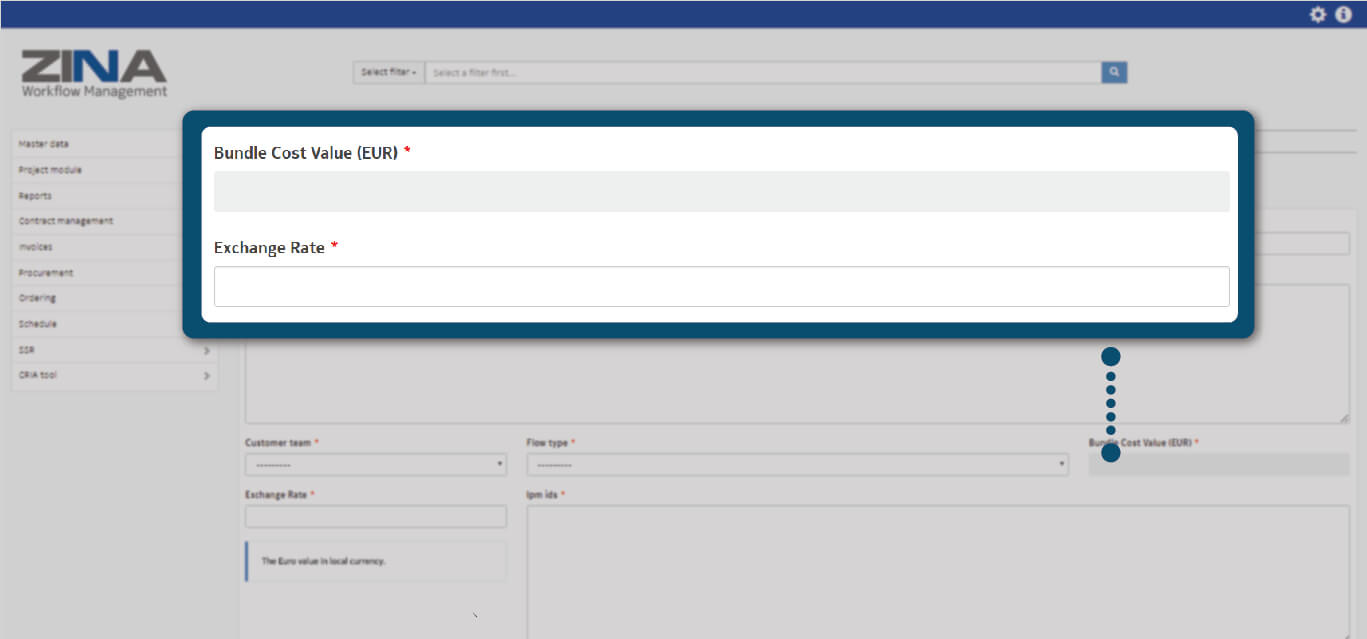Then, complete Bundle Cost Value field in Euros and check the box if bundle should be sent for approval chain.