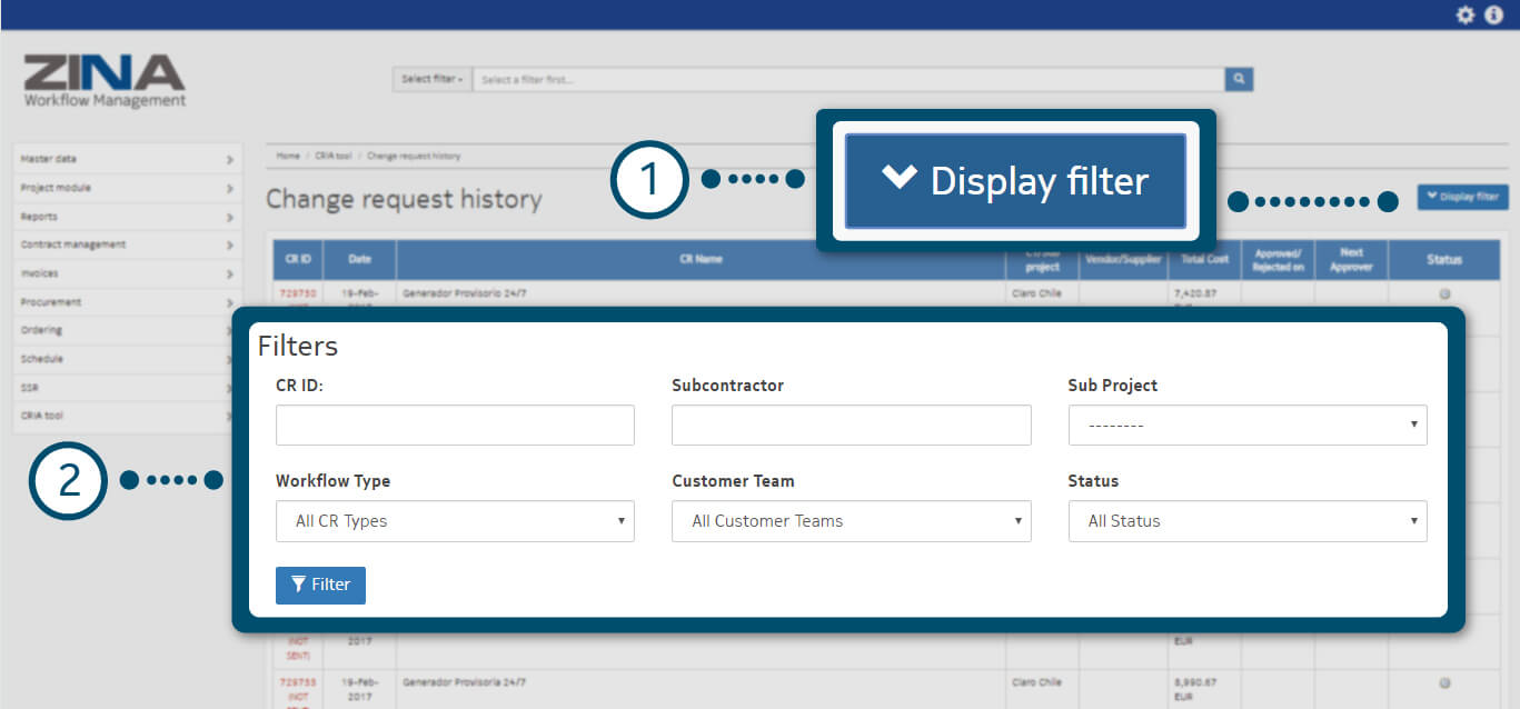 1. You can filter CRIA - Approval Change Request list, click on "Display" blue button.