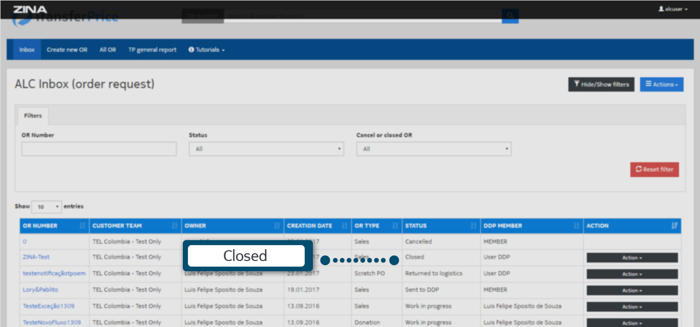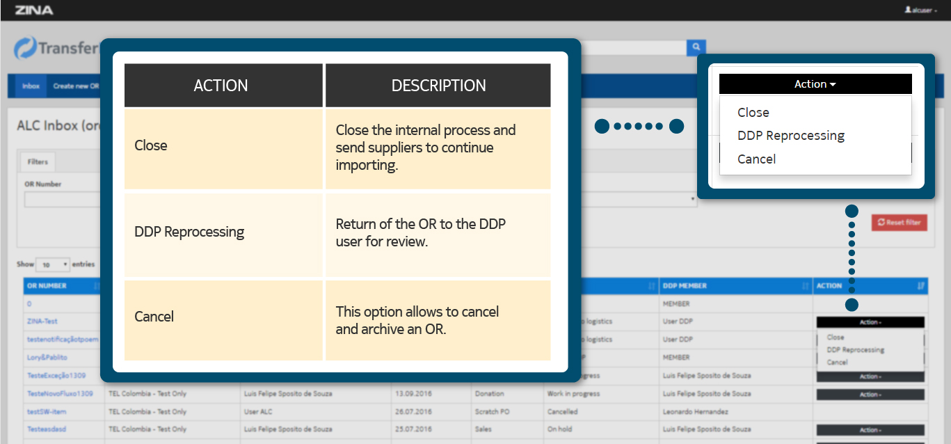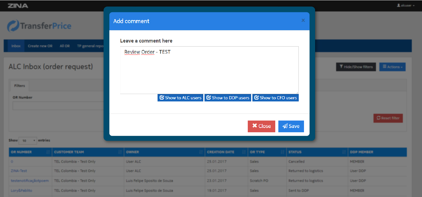 To finish write your comments and click on "Save“ blue button to send or click on "Close" red button to exit.