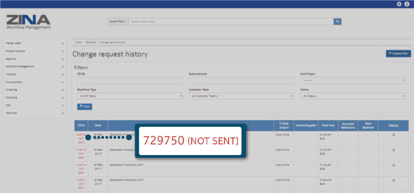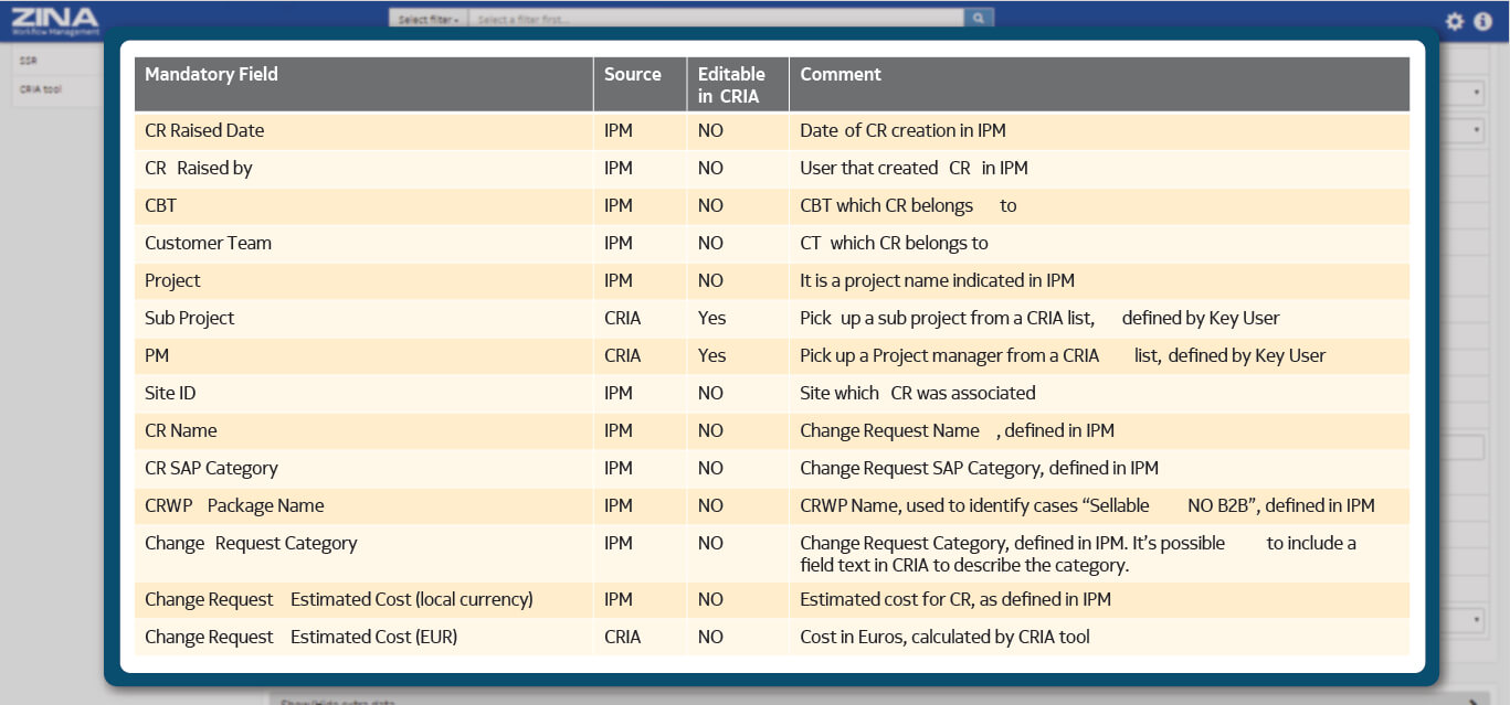 by ZINATeamZINA Workflow Management: CRIA - Change Request History