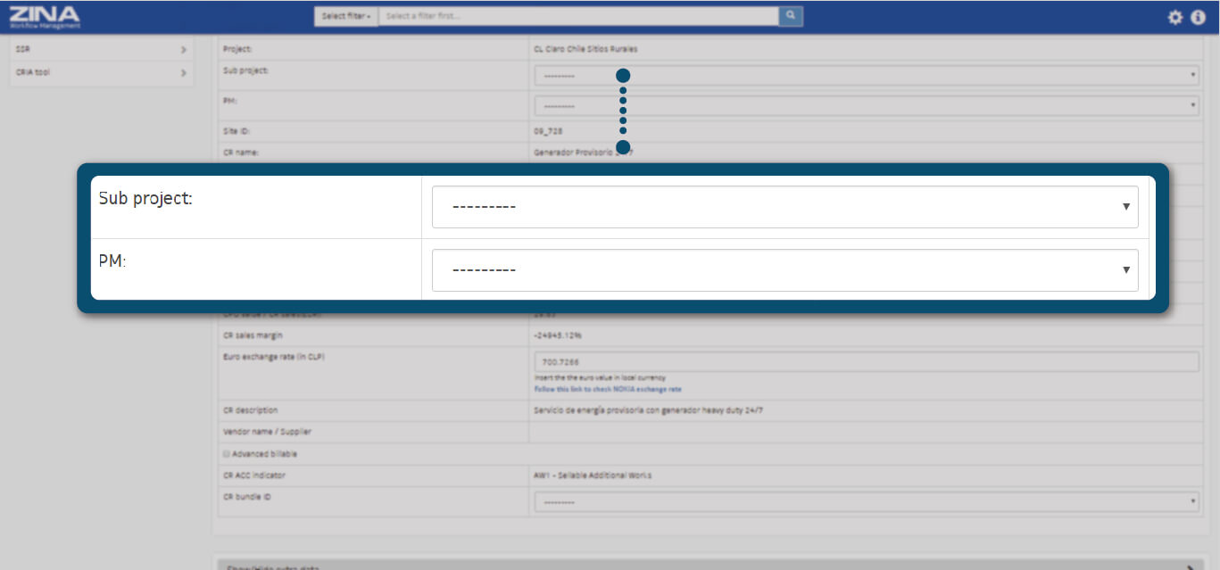 Select a subproject. If only has been creating a CT subproject, this field will not be editable. Then define PM user responsible for validating this Change Request.