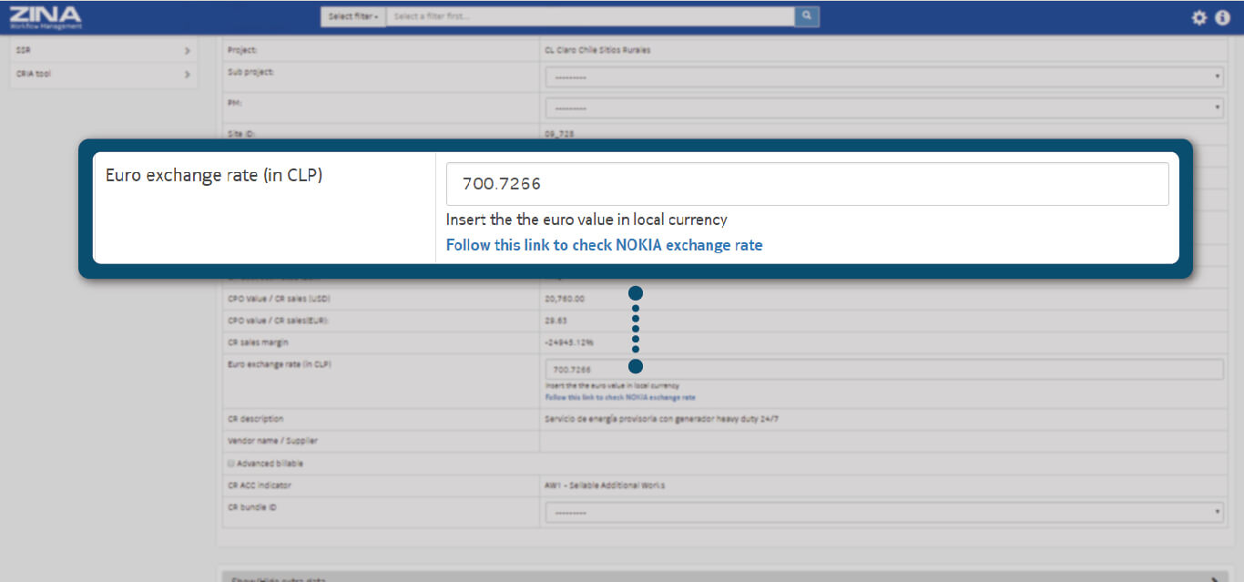 Complete Euro Exchange Rate field with a value in local currency.