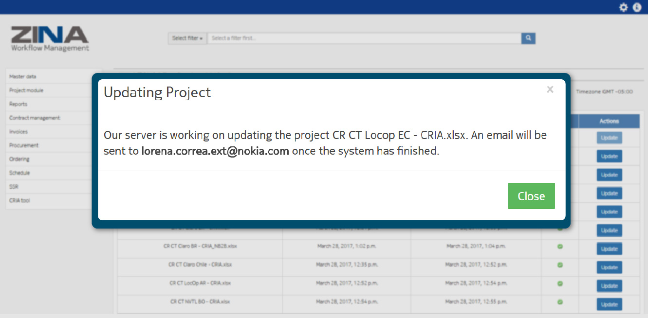 If the report generation was successful, It will be delivered by email, click on “Close” green button to exit.