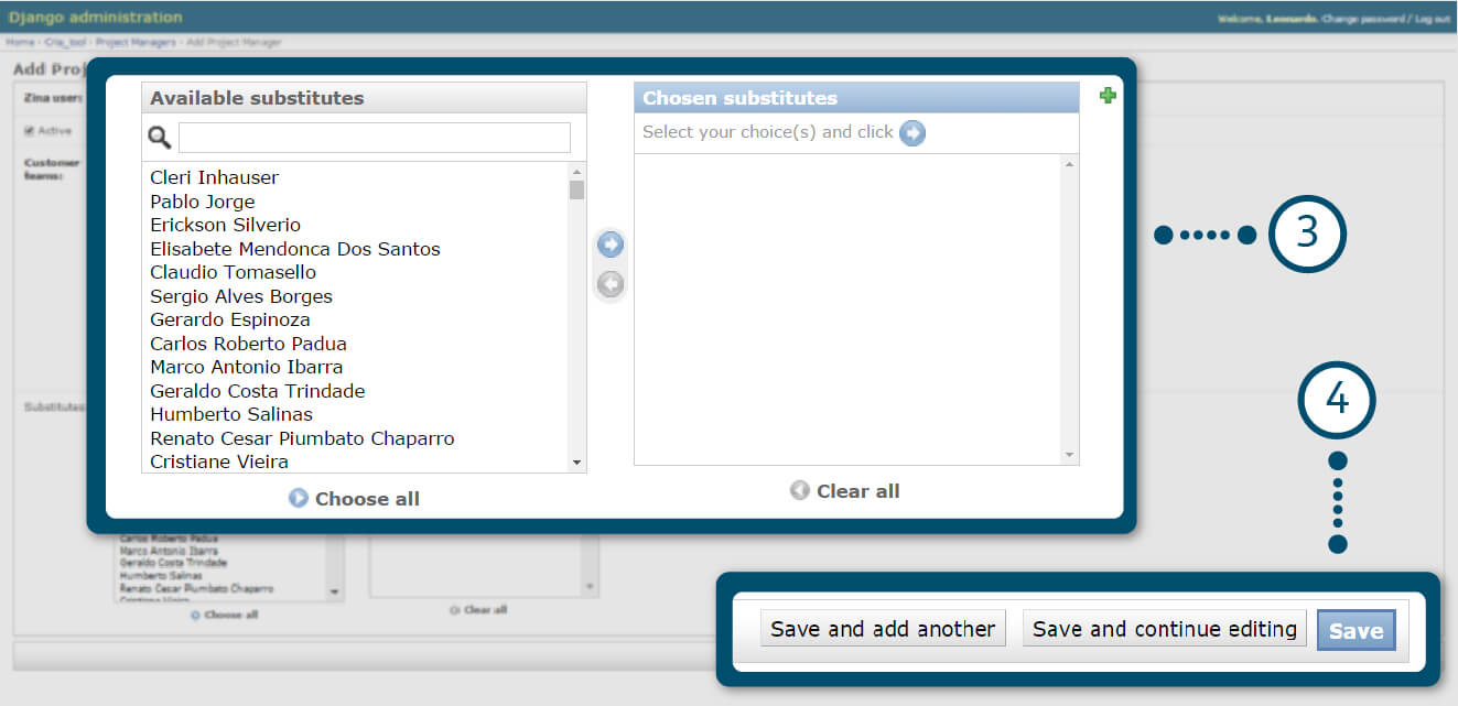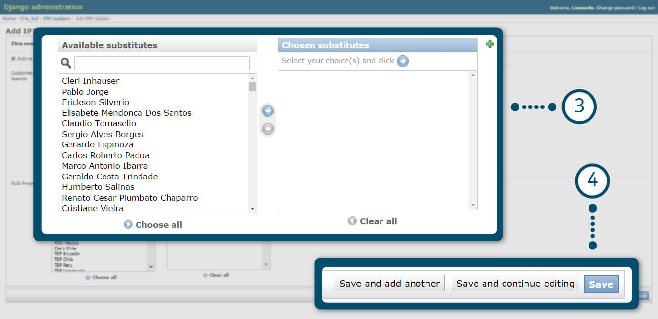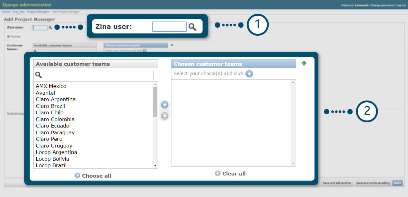 2. The tool will provide the list with all available customer teams to which the PM can be associated. Pick up from left side list items and include them in the right side list.