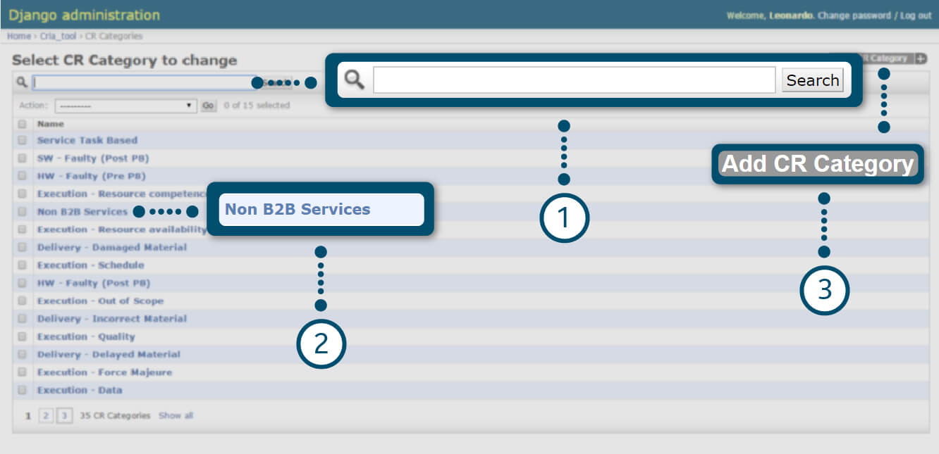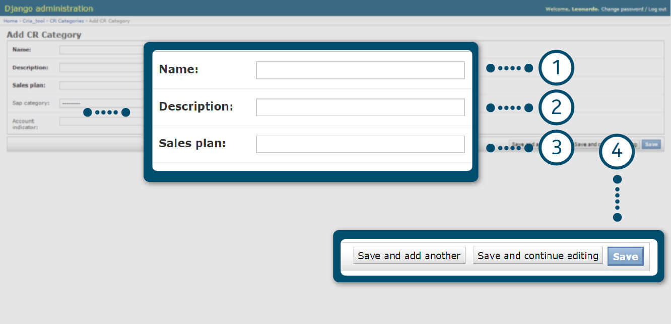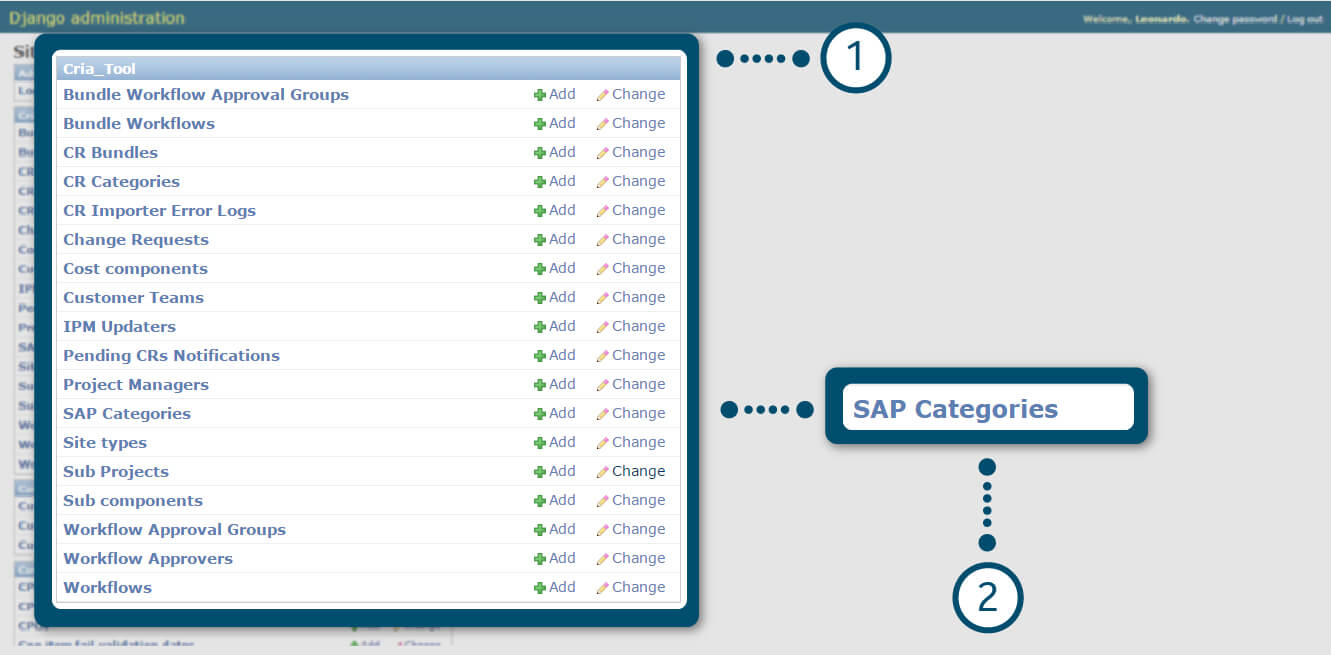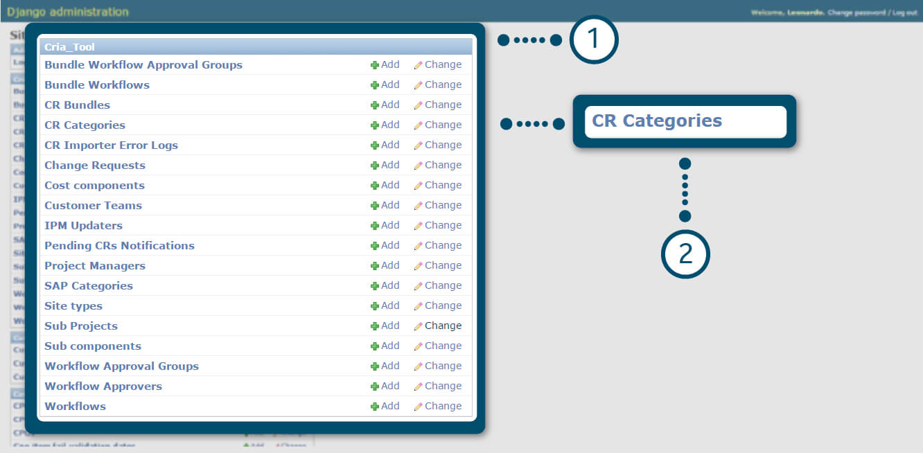2. Click on “CR Categories” or on the respective “add/change” links.