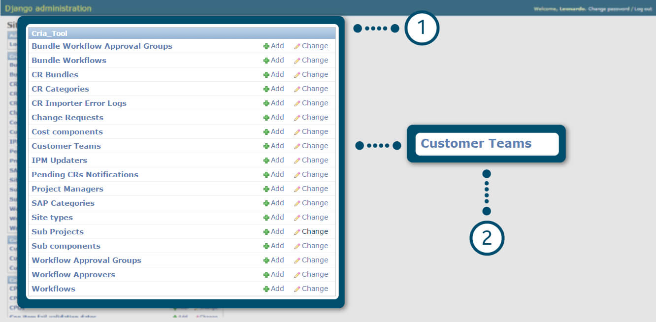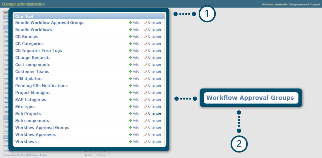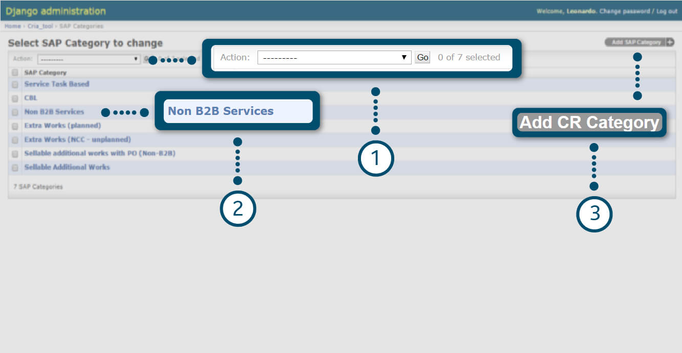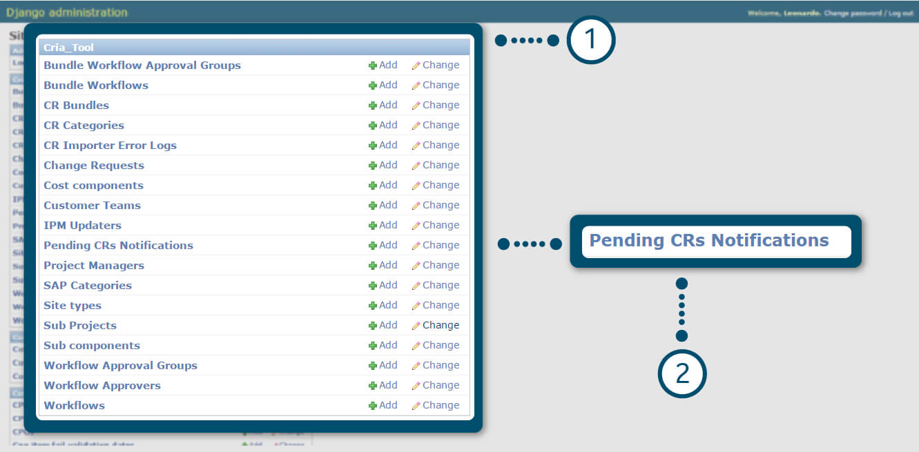 2. Click on “CR Categories” or on the respective “add/change” links.