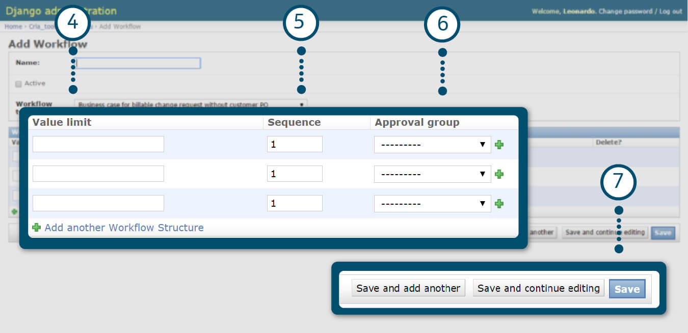 6. In “Sequence” index it is defined the relative position of the approval group inside the whole approval chain.