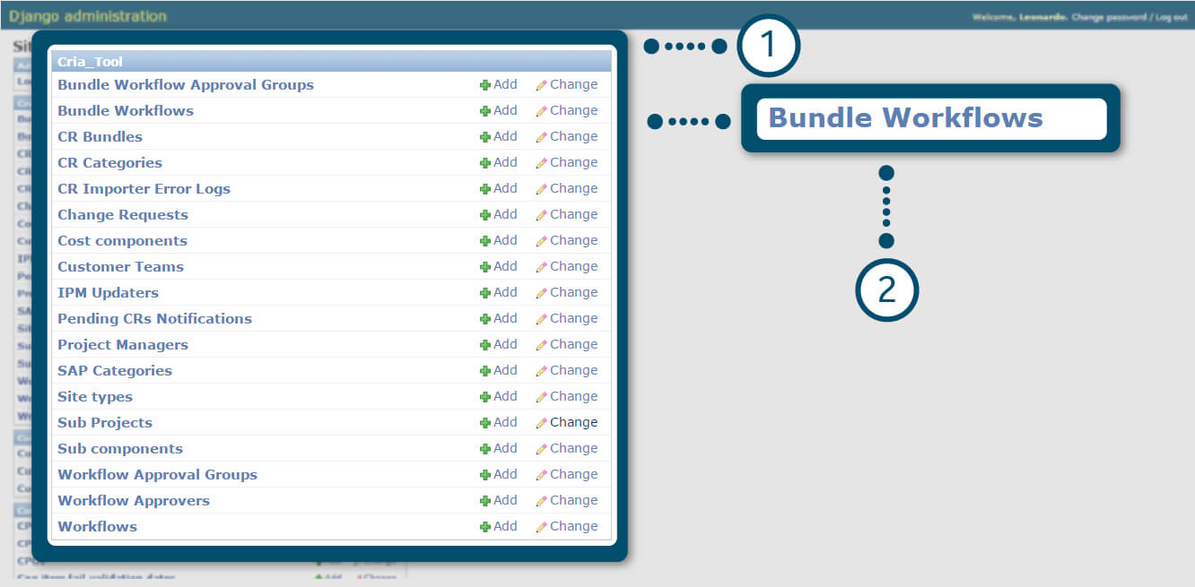 1. On the left side, under Change Request menu, the Key user will have access to some configurations submenus for CRIA Tool.