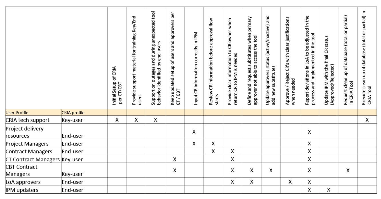 • CRIA acts in the process of Change Requests approval. It is still needed and mandatory the usage of IPM for all other processes associated with CRs.