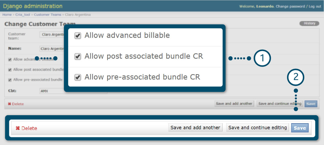 1. Check the box for allowing “Advanced Billable” CR type in your CT (AMX Chile only, at this moment). Or Check the boxes to allow “pre-associated” (TIM Brazil only) or “post-associated bundle CR” (AMX Chile only) in your CT (definition of pre and post will be in bundle session).