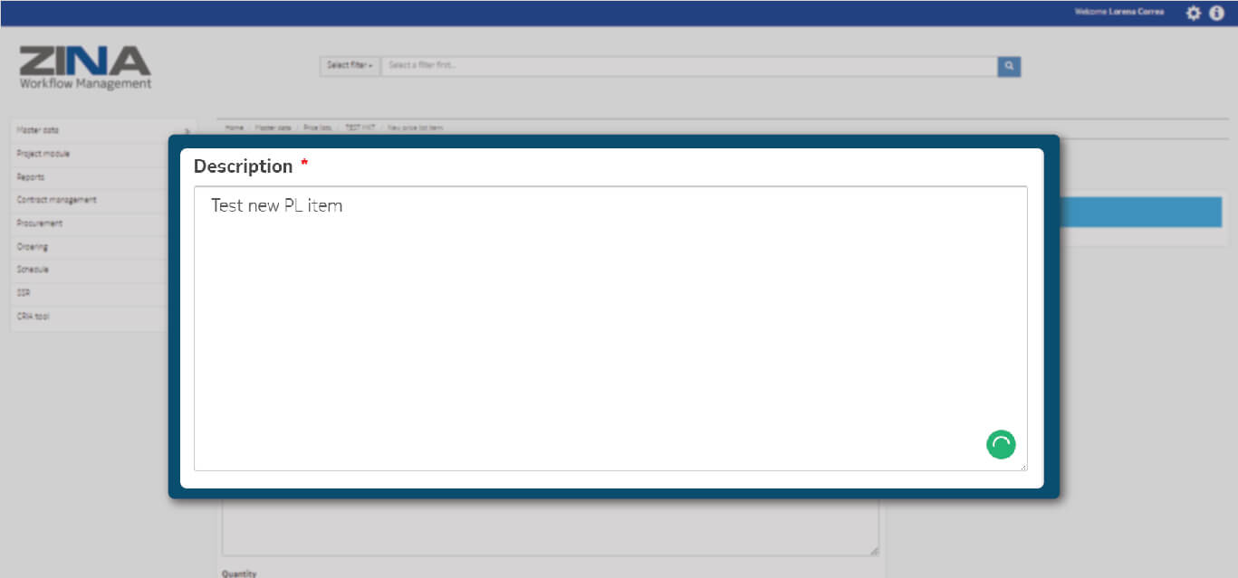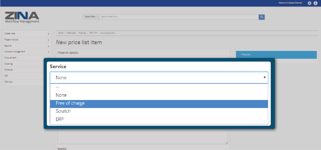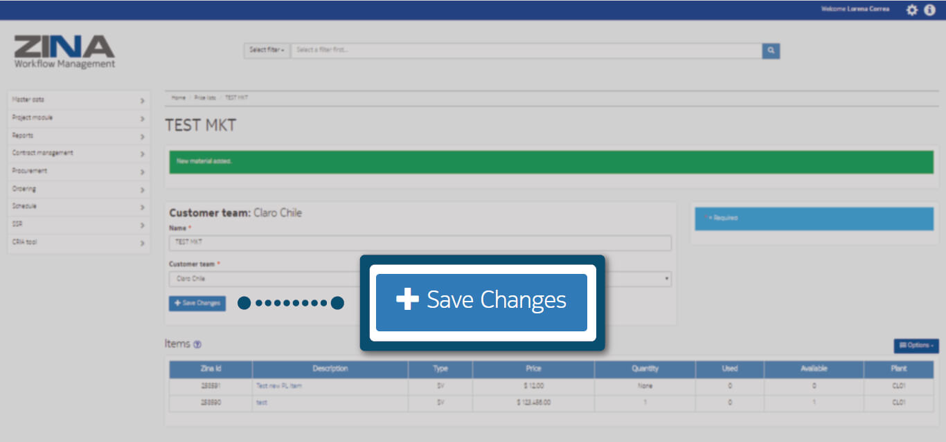 If the creation of the Price List Item was successful, a green alert with "New material added" message will be displayed.