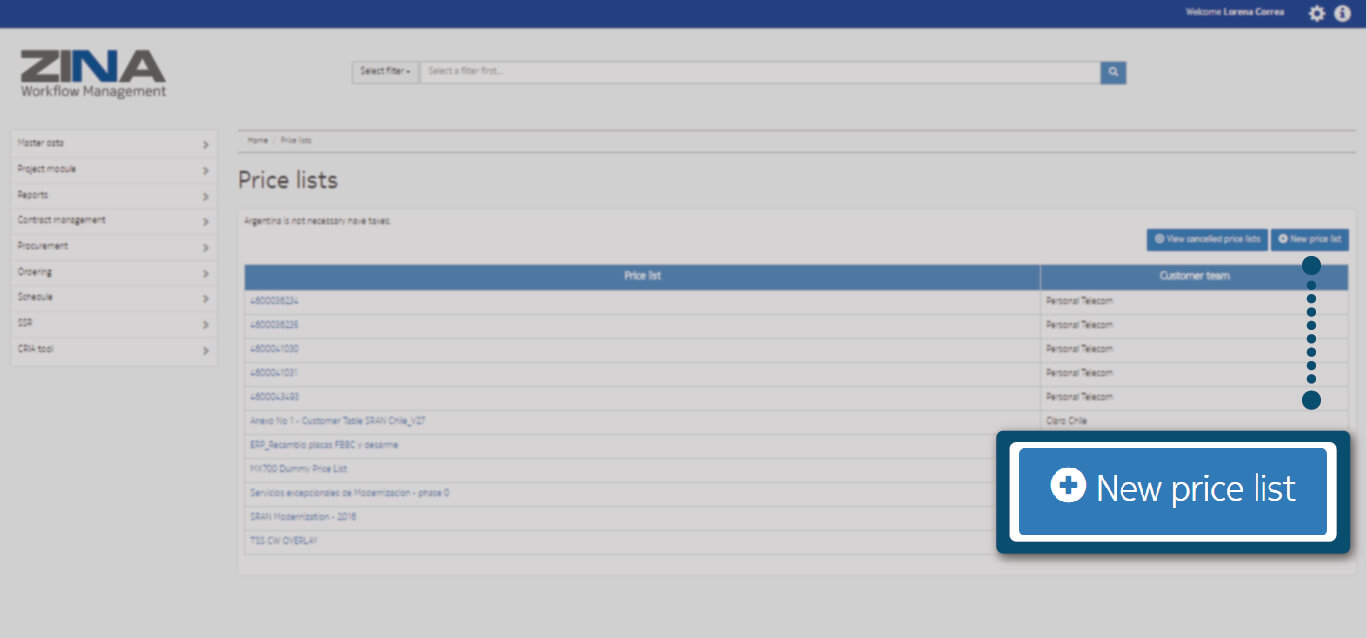 To create a new price list, click on "New Price list" blue button located in the upper right on the Consolidated Price list, as the following image indicates.