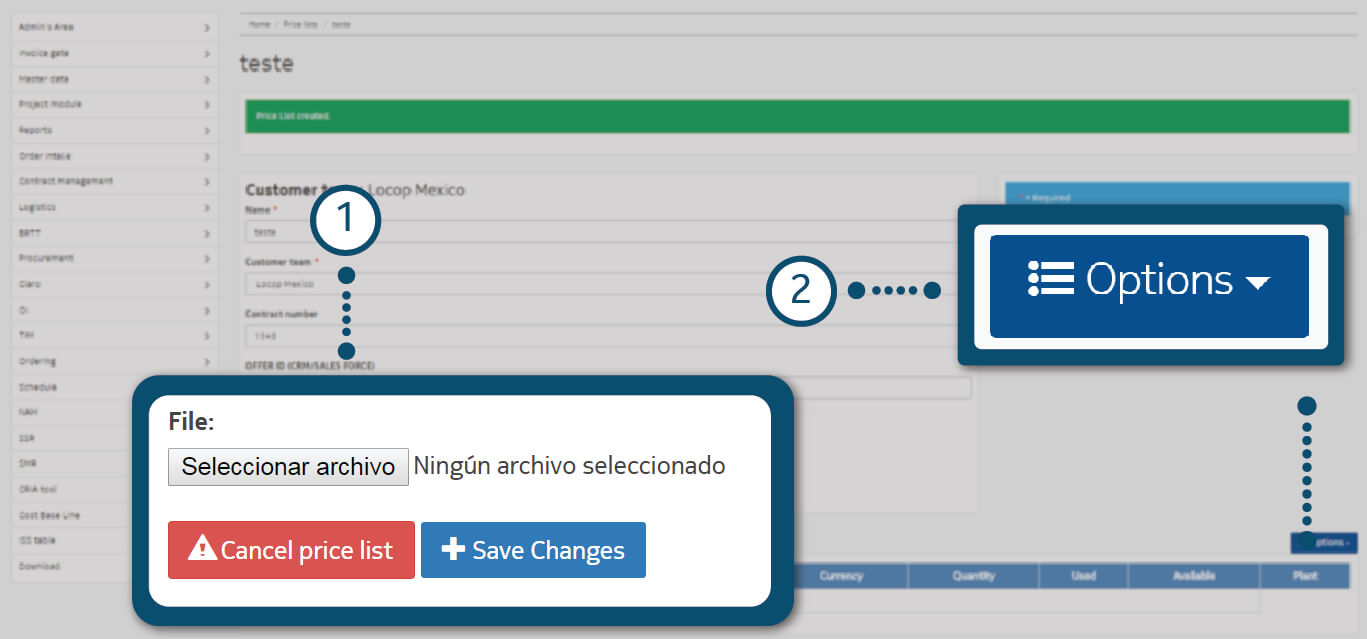 1. In the "file" option you can load the signed CPO evidence. 2. Click on "Options" blue button, as the image shows.