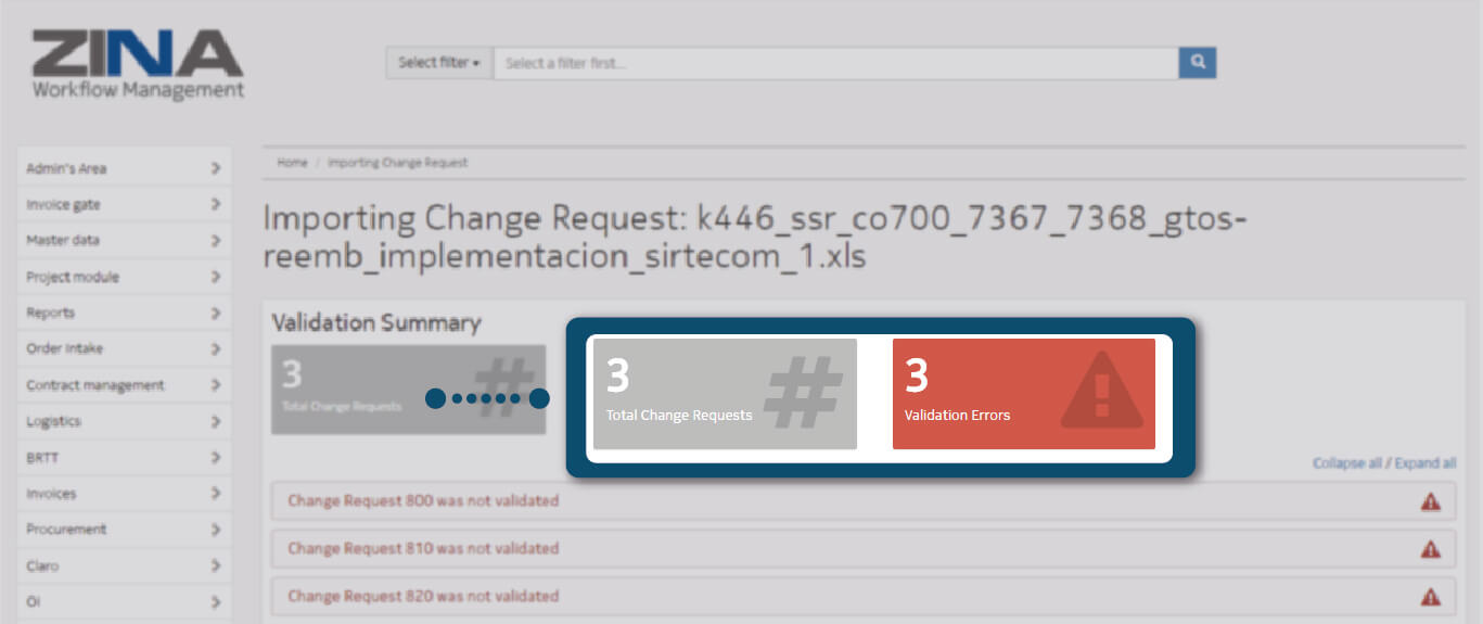 When the importer has finished uploading the files, it shows a summary of validation of errors and cases of success, as the image indicates.