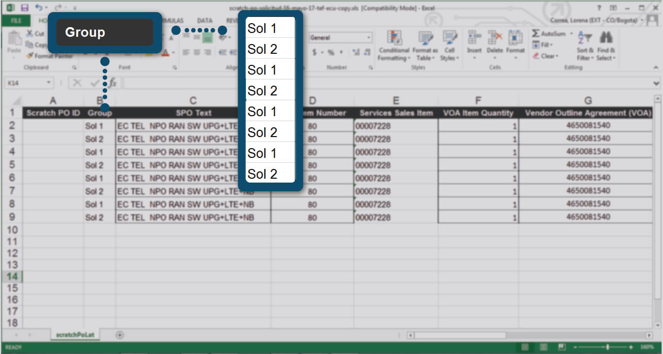 In “Group" column, define the corresponding group for each “Scratch PO ID".